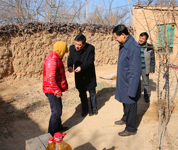 2015年2月6日,公司党委书记、董事长薛季民、纪委书记、工会主席王晓烨带领公司有关人员,前往省级“两联一包”定点扶贫村——澄城县赵庄镇高塬村扶贫慰问,为该村特困家庭和困难户送去大米、食用油和慰问金等,并带去公司全体员工的亲切关怀及节日祝福。