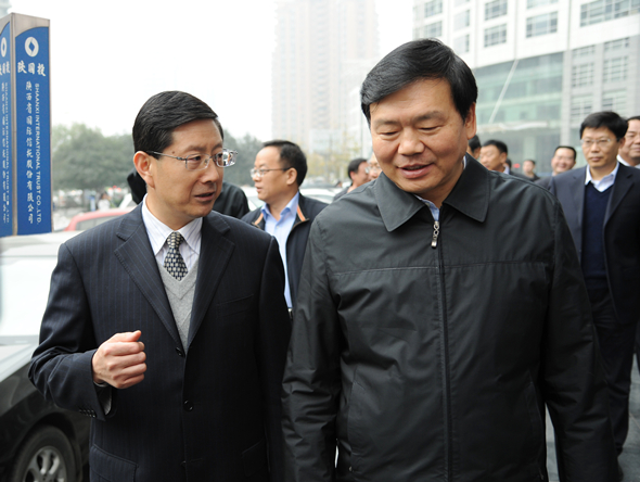 11月11日,省委常委、常务副省长娄勤俭在省金融办、省发展改革委、省财政厅、人行西安分行、陕西银监局、陕西证监局、陕西保监局等部门负责人陪同下来我公司视察工作。