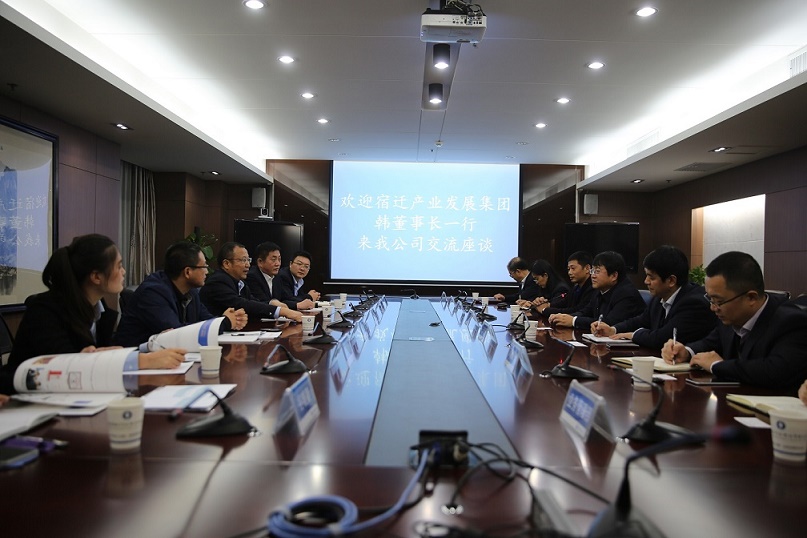11月14日下午,宿迁产业发展集团有限公司董事长韩锋、副总经理王兰建等一行来公司访谈交流,总裁姚卫东、副总裁王晓雁及相关部门负责人参加会议。
