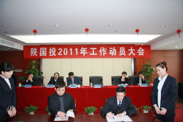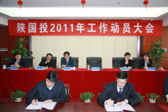 2011年2月10日,公司召开了陕国投2011年工作动员大会。公司领导、公司全体员工参加了会议。会议由公司常务副总裁杜磊主持,党委书记、董事长薛季民作了动员讲话,并对当前的要着重抓好的重点工作进行了部署。