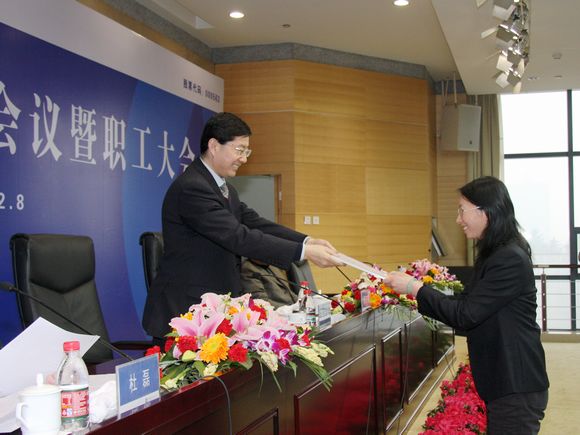 会上,党委书记、董事长薛季民首先做了工作报告;表彰了先进集体和优秀员工;下发了2010年各部门目标任务书;胡汝强副局长作了非常专业且具重要指导意义的讲话;最后,周玉明副秘书长代表赵正永常务副省长发表了重要讲话,周秘书长充分肯定了公司取得的发展成果,结合省上今年的总体发展目标,勉励公司抢抓机遇、大力创新、强化内控,提升素质,争创一流。