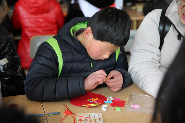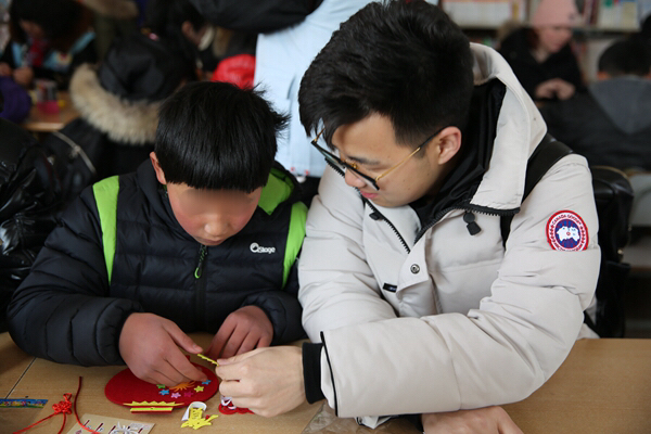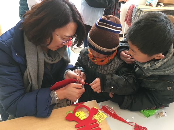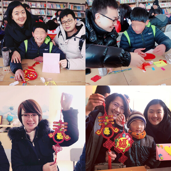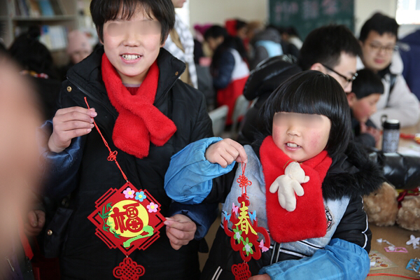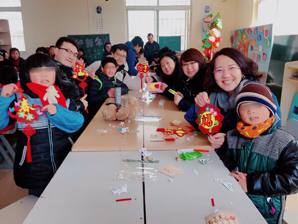 一大早,青年志愿者们便带着精心准备的小礼物和手工制作材料出发了,抵达儿童村时恰逢孩子们在冬日阳光下活动。青年志愿者们迅速融入,互动唱歌、聊天、游戏后,为孩子们带来了一节生动的手工小讲座,并与孩子们一起结对制作DIY新春贺卡、春节饰品。看着天真的孩子用长着冻疮的小手认真地在作品上写下新春祝福,并将满满的心意回赠时,志愿者们被深深触动,纷纷表示,愿意更尽一份心力,帮助更多不幸的孩子健康成长!