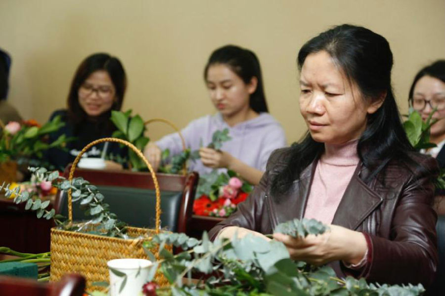 插花活动开始,首先由花艺老师向大家详细介绍了花意花语、鲜花保鲜等插花艺术方面的相关知识。接着由员工自己动手制作花篮,大家精心构思、大胆创作,色彩各异的鲜花经过女员工们的巧手创作变成一只只色彩缤纷、造型各异的美丽花篮。愉快的插花环节过后,女员工们对创作的作品进行了评比。这次活动,不但让女员工们的艺术鉴赏能力有所提升,同时也陶冶了女员工们的情操,更进一步激发了女员工们对美好生活的向往。