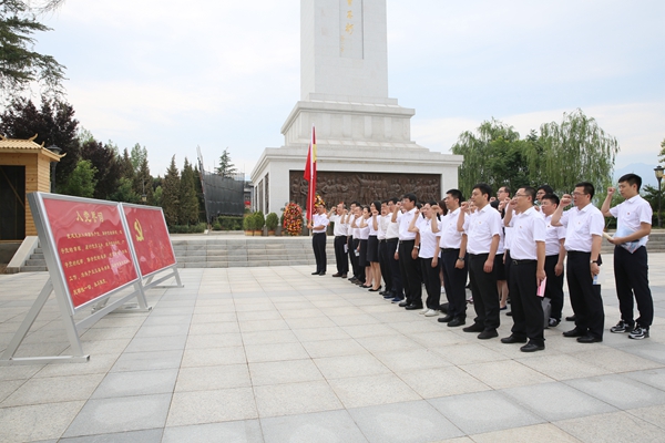 松柏挺立,绿水环绕,大家怀着无比崇高的敬意参观了渭华起义革命烈士纪念碑、渭华起义陈列大厅、渭华起义旧址、起义领导人旧居、烈士纪念塔等。在渭华起义革命烈士纪念碑前,陕国投第一、二党支部党员同志向渭华起义烈士敬献花篮,面对鲜红的党旗,全体党员庄严地举起右拳,集体重温入党誓词,重温曾经的决心和信念,并共同瞻仰了渭华起义革命烈士纪念碑。