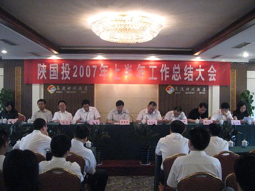 2007年7月6日下午,公司在高速神州酒店明厅召开了2007年上半年工作总结大会,公司领导及在西安的全体员工参加了会议。党委书记、董事长薛季民作了工作总结报告,并对下半年工作进行了安排。常务副总裁杜磊主持会议,并对各部门、各单位学习贯彻落实董事长讲话提出了具体要求。