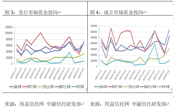 3月份集合信托市场的走强,中融研究认为:一是源自疫情在国内得到初步控制,全国复工复产节奏加快,二是受益于国家出台的一系列政策利好所致,市场信心得到修复,三是远程展业模式逐渐被接纳和开展,共同使得3月集合信托市场迅速从2月的低迷中走出。随着全国各地逐步恢复秩序,二季度信托行业或进一步得到恢复。