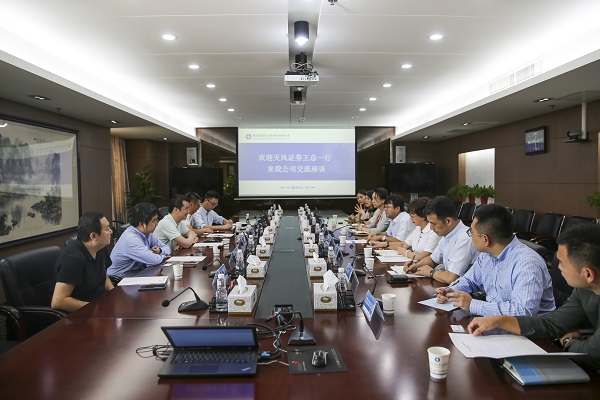 座谈中,姚卫东总裁代表公司对王总一行表示热烈欢迎,并简要介绍了公司的基本情况、业务创新布局、战略定位等。王琳晶总裁阐述了天风证券近期的同业合作思路,并表示与陕国投在风险偏好、风险管控能力等方面都较为契合。双方对目前业务合作情况进行了探讨,并就未来业务合作方向、合作方式等进行了深入沟通交流。