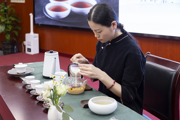 为庆祝第111个“三八”国际劳动妇女节,3月8日下午,公司举办了以“一盏清韵 静享清欢”为主题的女职工茶艺品鉴活动。公司党委书记、董事长薛季民,党委副书记、总裁姚卫东,党委副书记叶瑛出席此次活动,省外各部门均在线上同频参与。