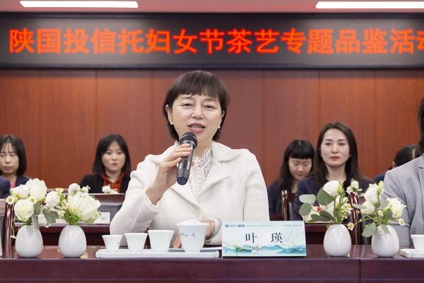 公司党委副书记叶瑛同志表示本次活动是陕国投庆祝“三八”节专题活动及常态关爱女职工的又一务实举措,希望员工通过此次茶艺品鉴活动修身养性、品味人生。公司市场总监王琼、业务总监孙西燕、高级风控官李琳出席此次活动,她们对活动给予高度评价,并表示在今后的工作中,希望女职工们继续保持良好的精神状态,不断加强学习,提高自身素质,适应时代需要,展现崭新的精神面貌和巾帼力量。