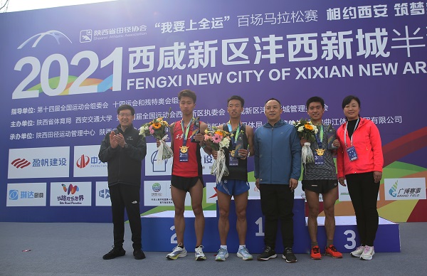 赛后,公司党委书记、董事长薛季民,党委副书记叶瑛作为颁奖嘉宾分别为半程马拉松项目总成绩男女前三名的选手颁奖。