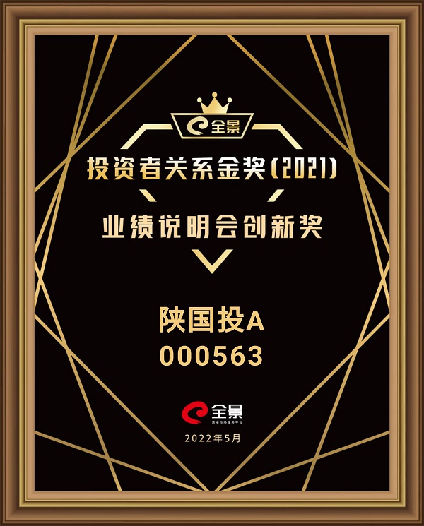 5月13日,由全景网主办、南开大学中国公司治理研究院参与推出的“全景投资者关系金奖”2021年度全国性评选,经过专家顾问组最后环节的评审,获奖榜单正式揭晓。我公司荣获“业绩说明会创新奖”,体现了媒体和投资者对公司投资者关系(IR)工作的高度认可。