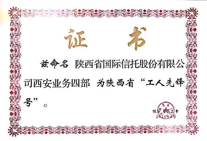 近日,中国金融工会下发《关于表彰全国金融五一劳动奖和全国金融先锋号的决定》,公司西安业务四部作为公司先进集体代表荣获2021年“全国金融先锋号”集体荣誉,这也是该部门继前期被陕西省总工会授予2021年陕西省“工人先锋号”称号后获得的又一殊荣。