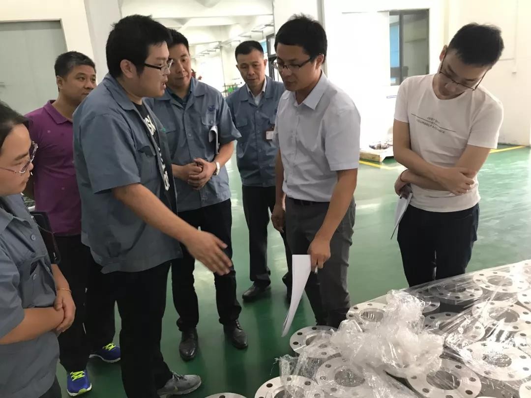 深圳市燃气集团股份有限公司安全技术部经理徐彬一行争分夺秒,高效统筹,分三个小组对公司生产现场、仓库管理及技术研发等方面进行了细致地考察,现场观看工人实际操作,实地了解各项管控流程,并详细查阅公司各类记录报表和资质文件,全面了解了公司的生产状况和管理水平。